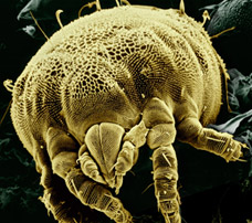 Who is this enemy? He's called a dust mite and we'll spare you trying to remember or even pronounce the scientific name. Dust mites live in household articles, such as furniture and carpets. Millions may inhabit one home, but they are invisible to the human eye. The dust mite feeds on shed dead skin cells. The fasces and dead bodies of mites are allergens to susceptible people, causing asthma, rhinitis or dermatitis.