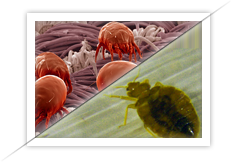 Those ominous things in the picture on the right are the real trouble makers. These little creatures are not visible to the naked eye, in fact they are so small that as many as 1000 of them could be placed on the head of a pin. And guess where their favorite breeding spot is? Yes, that's right... the mattress. Their ideal home!